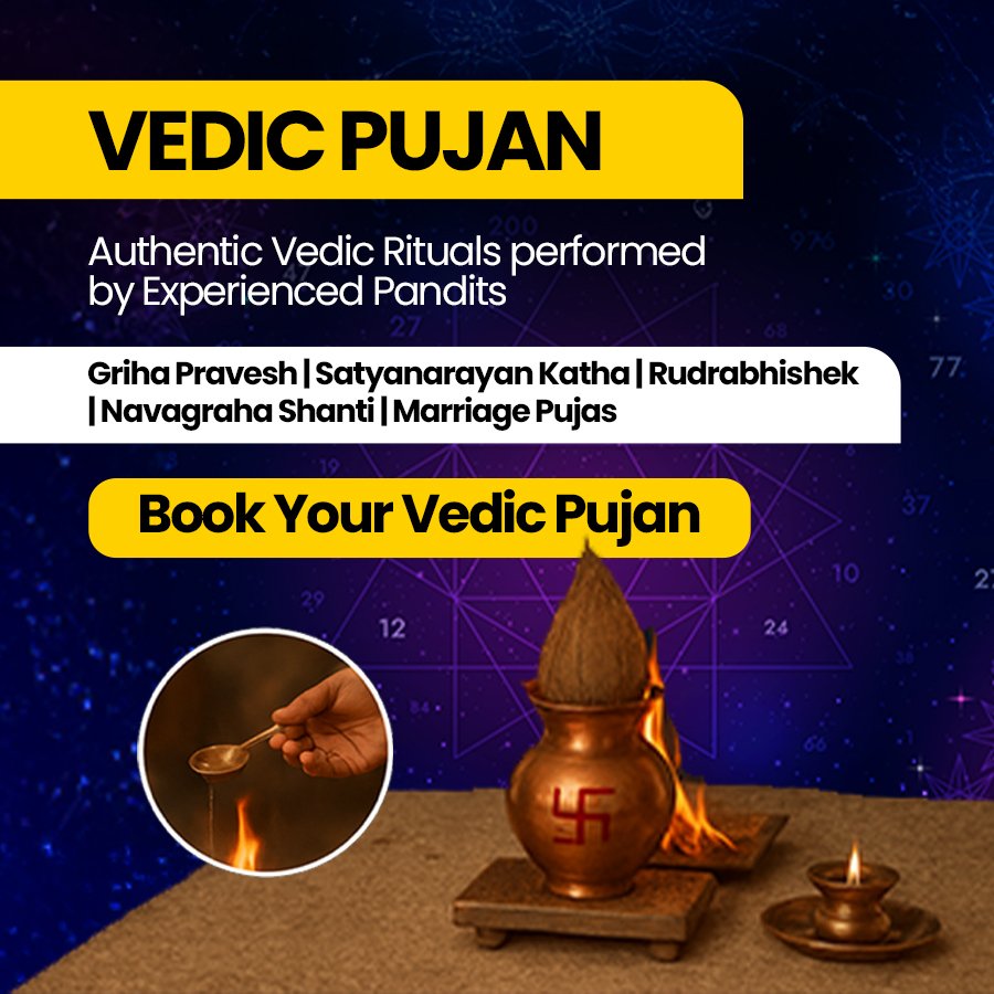 Performed by learned Vedic priests, these pujas invoke the grace of deities, cosmic forces, and planetary energies to ensure peace, prosperity, protection, and success. Vedic Pujan can be performed for personal well-being, family harmony, financial growth, health, and spiritual upliftment, and is considered highly beneficial for those experiencing life obstacles, negative energies, or planetary doshas.
